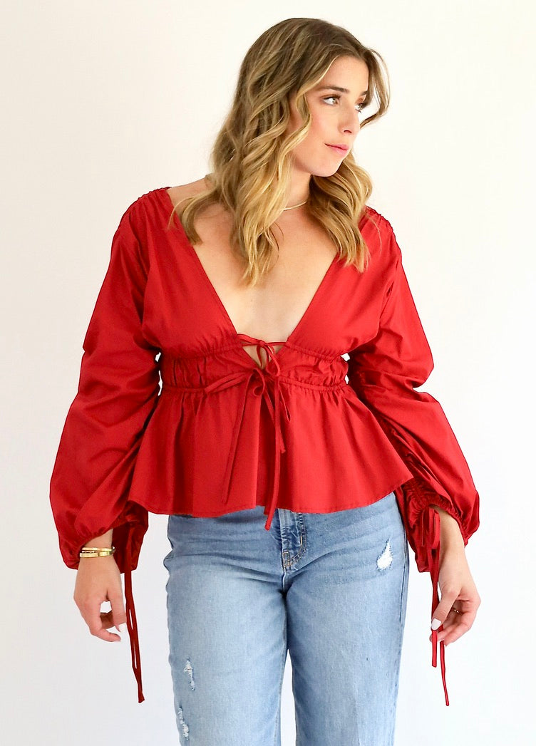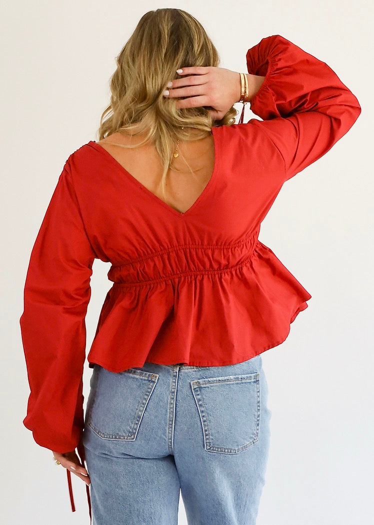 Low-cut long sleeve top with a simple, flattering fit.
